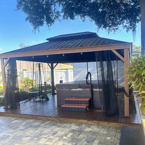 Size: 12' X 16'. Outstanding teak-finish powder-coated aluminum frame, sturdy for 4 seasons use and always catch your eyes.