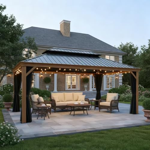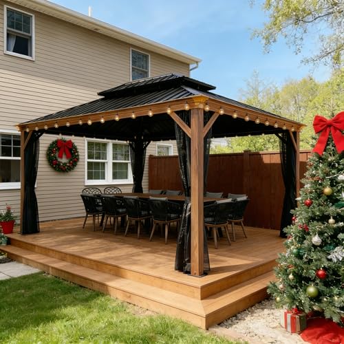 Size: 12' X 16' gazebo with 24 bulbs outdoor hanging string lights. You can improve the atmosphere of outdoor activities through 8 lighting remote control at night.