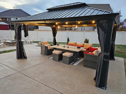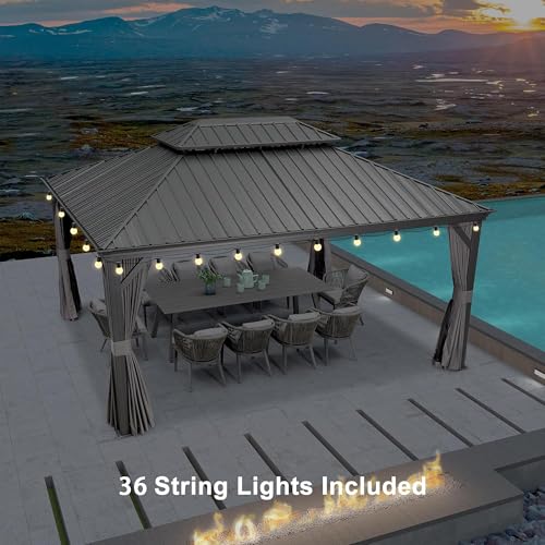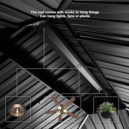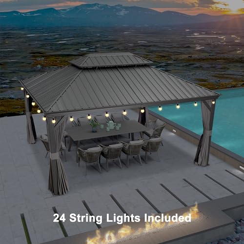 PURPLE LEAF 12' X 16' Permanent Gazebo with Light Hardtop Roof for Outdoor Lawn and Garden Pavilion Grey