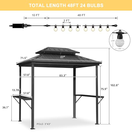2-Tier Galvanized Steel Top: Double vented roof which can help the smoking spread out easier when grilling. Galvanized steel roof, which meet flame-resistant safety standards, can effectively resist harmful UV rays and fade resistance.
