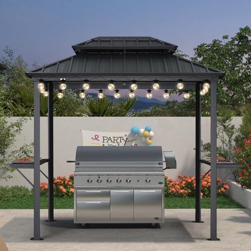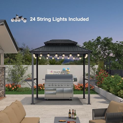 Sturdy Storage Space: Comes equipped with side shelves that provides an area necessary to place cutleries or grilling accessories or food.Aluminum Frame: Powder-coated aluminum frame which resists rust. This BBQ gazebo is durable and can be used outdoors for a long time.