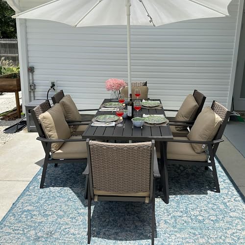 Comfort Cushions & Back Pillows: Enjoy full-body comfort with our outdoor dining set's seat cushions & back pillows, featuring breathable spun textile over high-resilience foam. Removable covers make cleanup simple.