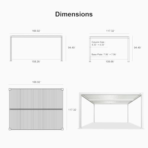 Aluminum Frame: The sturdy aluminum frame and upgraded larger beam dimensions ensure the aluminum pergola withstands winds up to 60 mph
