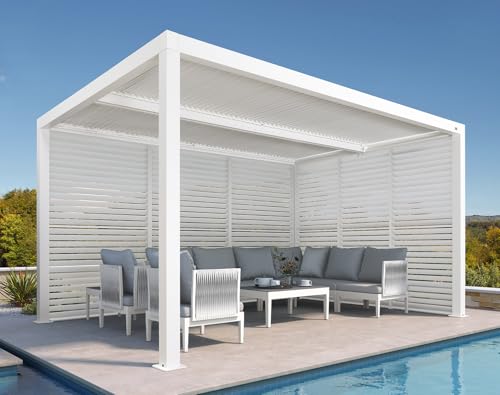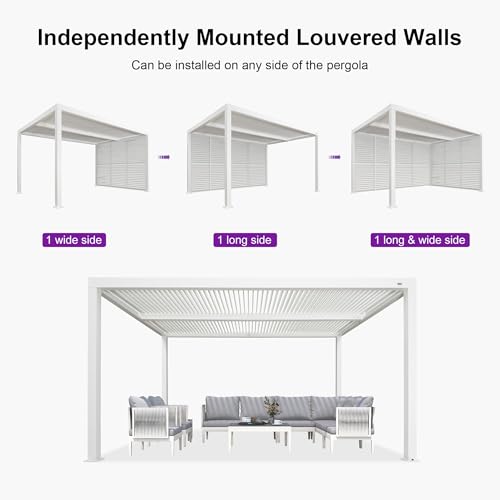 Full Aluminum Louvered Walls: Made from high-quality aluminum, are durable and withstand rust, peeling, and fading. Please ensure that the louvered walls are bolted to the ground or concrete