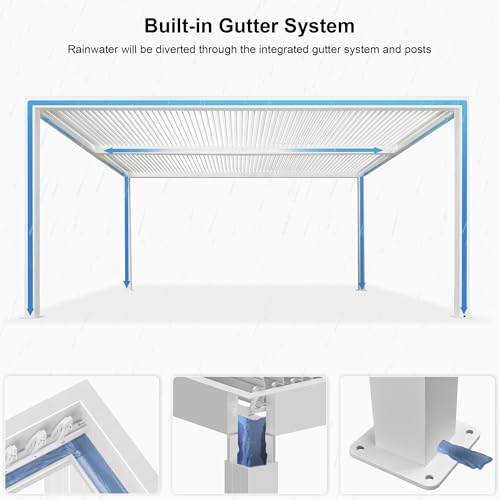 Aluminum Alloy Frame: Strong material, the side awnings are smooth and withstand rust; The Louvered Pergola offers wind protection of up to 72 mph