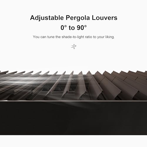 0° to 90° Adjustable Pergola Louvers: Unique design of two independent adjustable roofs customizes the shade up to 240 square feet, allowing you to do different things in two adjacent areas.