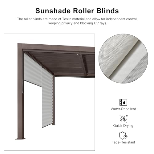 Dimensions: The pergola size is 12' × 20' with roller blinds for one long and short beam side. Roller blinds are only suitable for PURPLE LEAF louvered pergola.