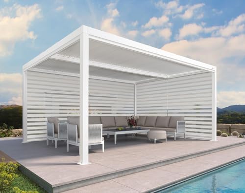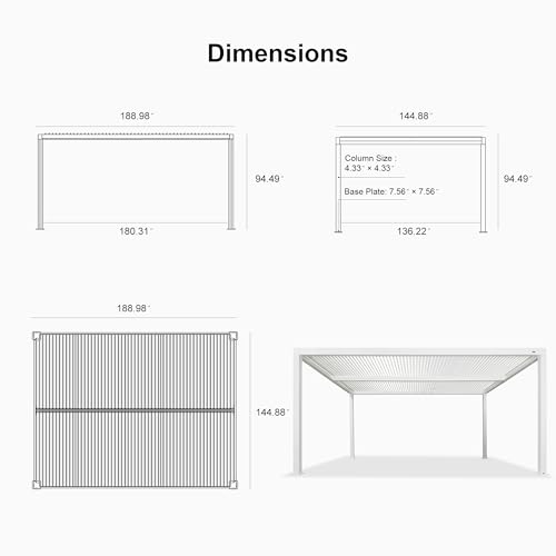 Aluminum Alloy Frame: Strong material, the side awnings are smooth and withstand rust; The Louvered Pergola offers wind protection of up to 72 mph