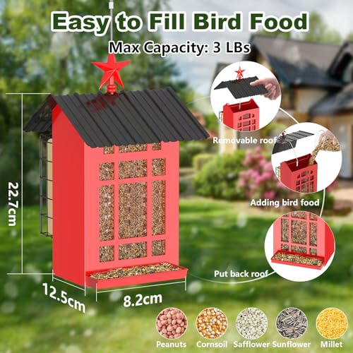 EASY TO REFILLING: Designed with convenience in mind, our bird feeder is easy to clean and refill a breeze. With ample space to hold up to 3 pounds of bird feed, our feeder eliminates frequent refilling hassles, enjoying a relaxing birdwatching session