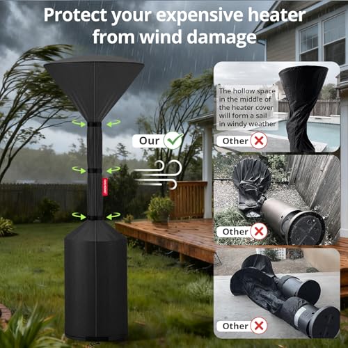 ?Easy to Install and Remove?Equipped with a full-length zipper, the Standup Patio Heater Cover is easy to install and remove (with the help of a ladder or stool). The bottom tightening feature utilizes a simple and efficient Velcro design, eliminating the hassle of frequent reinstallation compared to traditional drawstring closures.