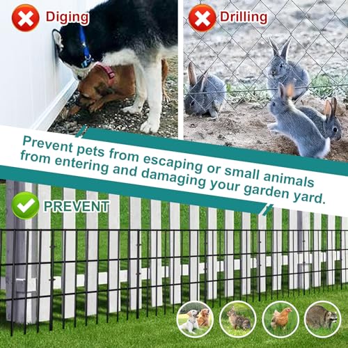 ?Upgraded Animal Barrier?The gap between upgraded ganden fence animal barrier has been reduced to 1.48 inches, consisting of 9 metal wires. The reinforcement design makes it more stable and not easily deformed, perfectly blocking the gap at the bottom of the fence, expanding the protection range, preventing small animals such as dogs and rabbits from digging, and protecting the garden, yard or Patio.