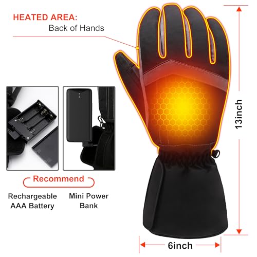 Rechargeable Heated Gloves: Includes 1 pair of heated gloves, 1 battery box (no battery included) and 1 user manual; the heated gloves is suitable for battery box(AA batteries) and also compatible with 5V mini power banks (AA batteries and power banks need to be purchased separately). If you are looking for the same type of gloves with batteries, please search for this ASIN:B0FWC9BQ25 at the store and make the purchase.