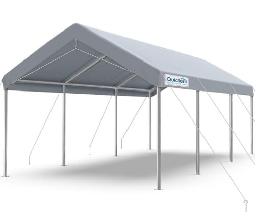 Quictent 10’x20’ Heavy Duty Carport Car Canopy Galvanized Car Boat Shelter with Reinforced Steel Cables-Silver Gray