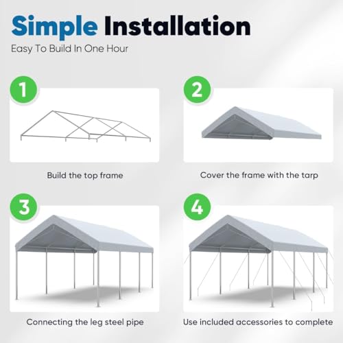 ?Upgraded Galvanized Tube?Heavy Duty Rust Resistant galvanised steel framework and metal corner joint makes our carport more durable.