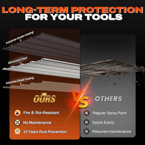 [10-Year Rust-Free ] Made of industrial galvanized steel. No painting needed. Stands up to sun and rain for a decade of reliable backyard storage.