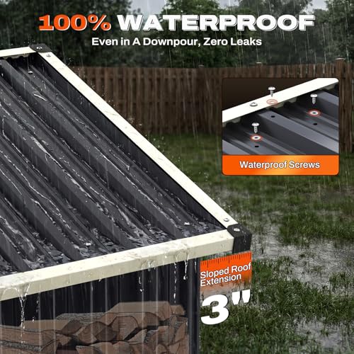 [100% Waterproof Shed] Sloped roof with 3" extension keeps tools bone-dry. Protects generators, power tools, and patio cushions from heavy rain.