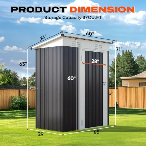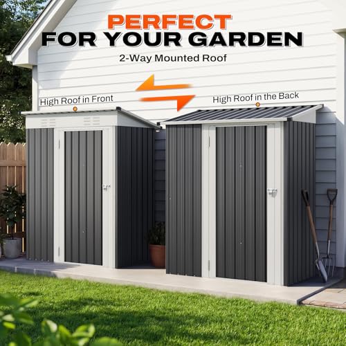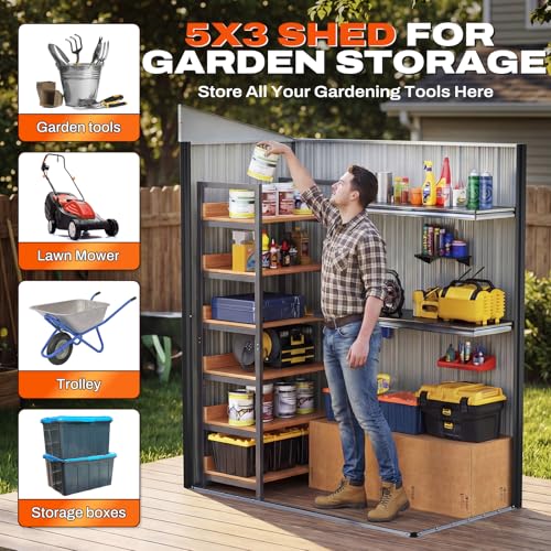 [Compact 5x3FT Shed ] Fits 1 mower, 2 trash cans, bike and garden tools. Ideal for side yards, patios, and decks to store pool toys or grill gear.