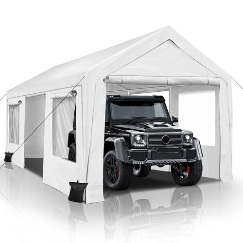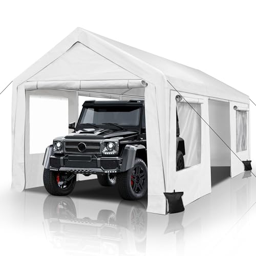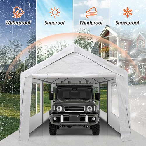 ?????Heavy Duty Carport with Ventilation Windows??Our heavy-duty car garage tent is built to last with sturdy galvanized steel pipes?waterproof 170g PE tarp?Extra sidewall and backdoor zippers design to keep good ventilation?
