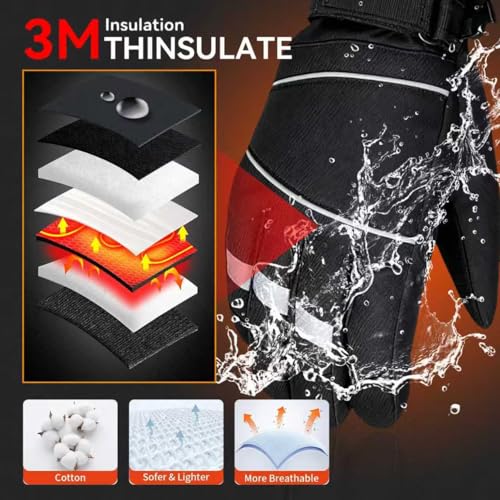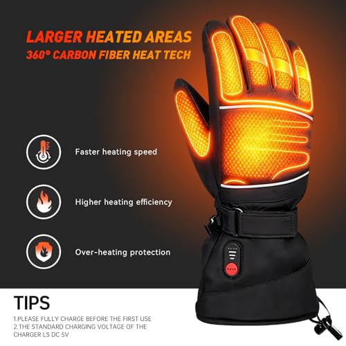?????Winter Activities Partner?heated ski gloves has reflective strips on the back, increasing safety during cycling. The palms are made of silicone anti-skid material, which is provides a stronger grip. Waterproof fabric, making them perfect for shoveling snow, skiing, fishing, dog walking. The adjustable buckle and drawstring allow the gloves to fit snugly on your hands, preventing wind from entering through the cuffs. Come with warm lining to resist the cold and lock in the temperature.