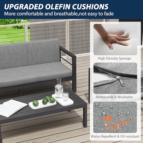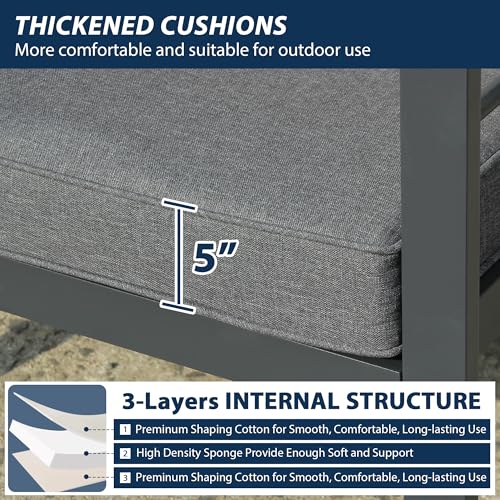 Upgraded All Aluminum Frame: Our outdoor patio furniture set is made of high quality aluminum, which is more durable, rustproof and corrosion resistance while remaining lightweight.It's designed to withstand all weather conditions and perfect for outdoor use.