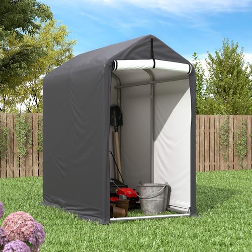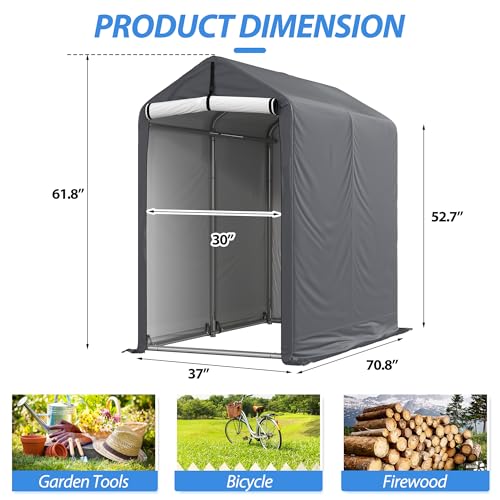 WATERPROOF TARP: The portable storage shed is designed with premium polyethylene fabric, which is durable and can withstand harsh weather conditions, keeping your items dry and protected from the rain and UV rays.