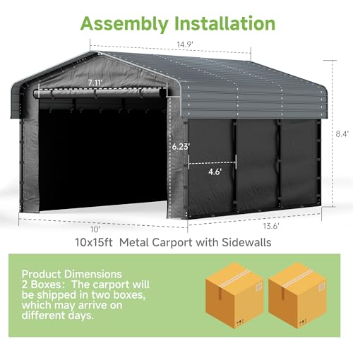 2 Packages: This carport will be shipped in two boxes, which may arrive on different dates. Please be patient and wait for all the boxes to arrive before installing (if you have any questions about our products, please feel free to contact us).