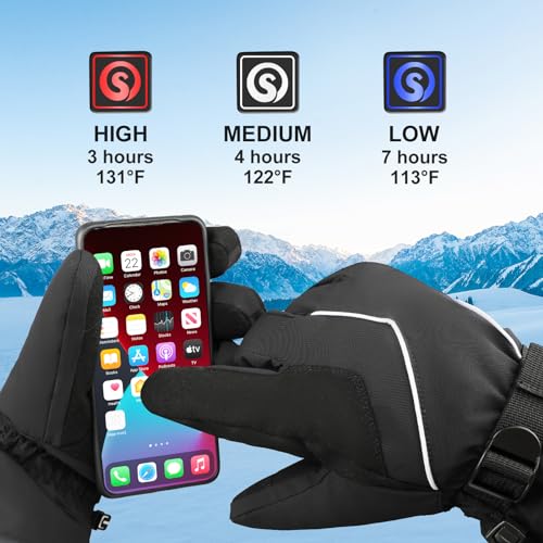 Three-level Temperature Adjustment: The rechargeable mens heated gloves feature three temperature settings - high, medium, and low. The high setting reaches up to 131?, the medium setting reaches 122?, and the low setting reaches 113?. Cater to different needs, ensuring comfort and warmth in various weather conditions