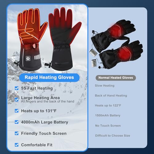 Waterproof Design and Touchscreen Functionality: The heated gloves for women come with touchscreen functionality, allowing you to use your phone without taking off the gloves. The palm is designed with PU material for waterproofing, especially suitable for snowy conditions. Adjustable wrist straps not only keep the wrists warm but also ensure the gloves fit most individuals
