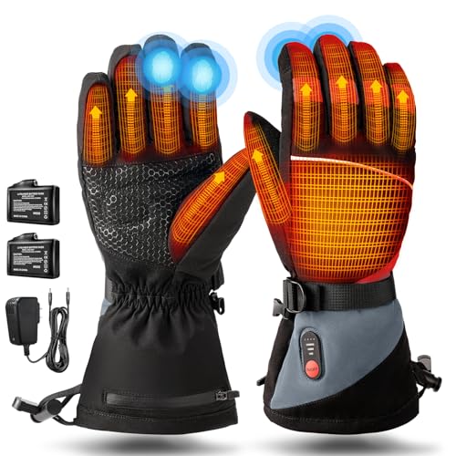 ?Winter Activities Partner?Heated gloves has reflective strips on the back, increasing safety during cycling. The palms are made of silicone anti-skid material, which is provides a stronger grip. Waterproof fabric, making them perfect for shoveling snow, skiing, fishing, dog walking. The adjustable buckle and drawstring allow the gloves to fit snugly on your hands, preventing wind from entering through the cuffs. Come with warm lining to resist the cold and lock in the temperature.
