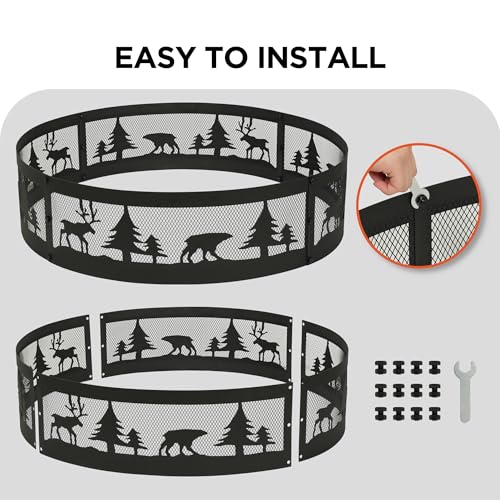 RUSTIC PATTERN DESIGN: Adorned with charming deer, tree, and bear patterns, this fire pit ring brings a rustic feel to any outdoor space, ideal for cozy wood-burning fires.