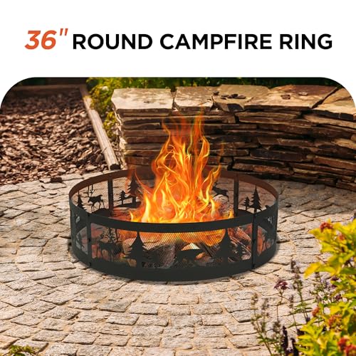 DURABLE & HIGH HEAT OUTPUT: Crafted from sturdy steel with a black high-temperature paint finish, this 36'' outdoor fire pit ring offers ample space for wood burning, making it perfect for parties, camping, and more. Built for durability and safety, it ensures long-lasting use.