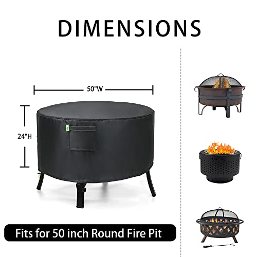 Designed for Round Fire Pit: The firepit cover size is round: 50’’L x 50’’W x 24’’H, Perfect Essential for your valuable Rectangle Outdoor Propane Gas Fire Table. Please measure your firepit before buying. When shopping for a fire pit cover, it is important to measure your fire pit and choose a cover that fits snugly over the top.