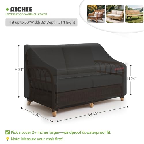 ?Perfect Fit for Loveseats & Sofas? Designed for outdoor loveseats up to 60"W*34"D*31"H , this cover fits most loveseats, 2-seater couches, sofas, and patio benches. Tip: Measure your furniture and choose a cover 1-2 inches larger for optimal wind resistance.