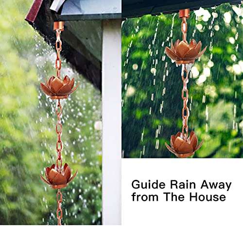 ?Extra-Long & Adjustable?This rain chain for gutters includes an 8.5ft chain with 12 lotus flower cups, suitable for the standard single-story house. Shorten/lengthen the chain length to fit your building by removing/adding the lotus/links.