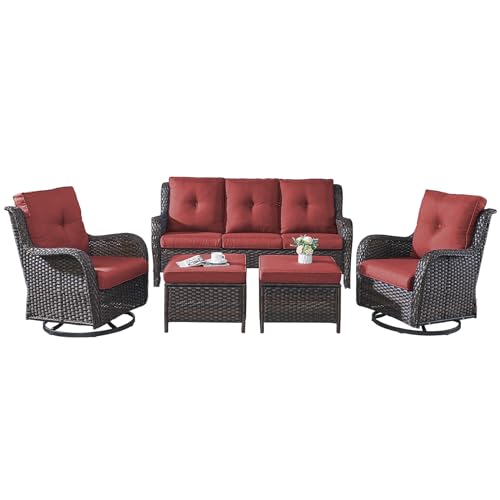 ?Deep Seating & Comfort Cushions?The patio furniture set with 4-inch Seat Cushion,5-inch Back Cushion,3.5-inch Ottoman cushion,create the ultimate patio seating and foot relaxation experience.
