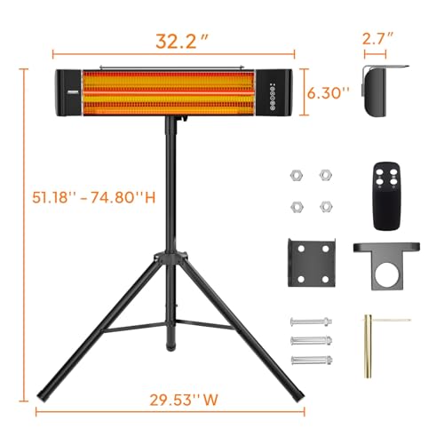 ???? 100% Satisfaction: The outdoor electric heater comes with a 1-year manufacturer warranty. Our electric patio heaters are manufactured to strict quality standards and come with TUVus certification. All installation accessories are included
