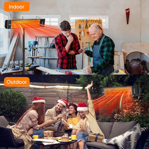 ???? Indoor and Outdoor Heater: The outdoor heater efficiently heats up your patio during cold winter in just 3 seconds. The power will be immediately shut off when it overheats. It is fanless and noiseless. Perfect for gazebos, patios, outdoor cafes, restaurants, workshops, and any other indoor or outdoor living space