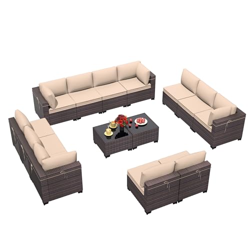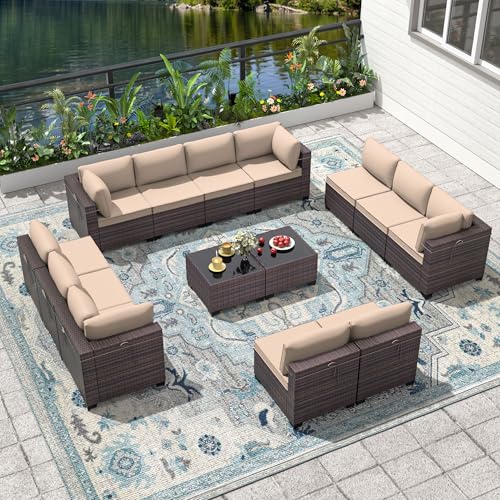 Comfortable Furniture Set: This outdoor furniture set includes 8 midddle sofas, 4 Corner sofas, and 2 coffee table. Each part of this patio furniture set can be used individually and can be flexibly combined to suit your needs and room space. In addition, two plastic clips are provided between each sofa to connect the sofas. With plenty of seating, you can enjoy a relaxing time with your friends and family.