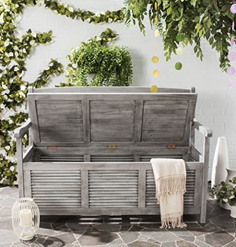 The grey finish of this outdoor storage bench will add the perfect accent to any outdoor space