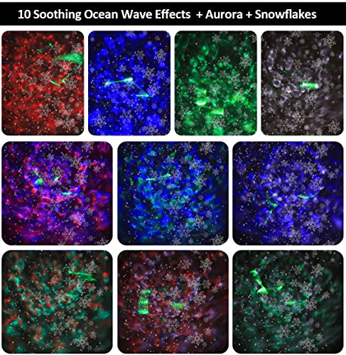 ?Christmas Projector Lights? - 2021 Newest Version Projector Lights! Snowflake Light Projector + LED Ocean Wave Projecton! In a darkened room, it transforms your ceiling and walls into holiday spaces. Two different styles of projection lights create an enjoyable and relaxing experience for your whole holiday time. Be excited to get the two sets of them!