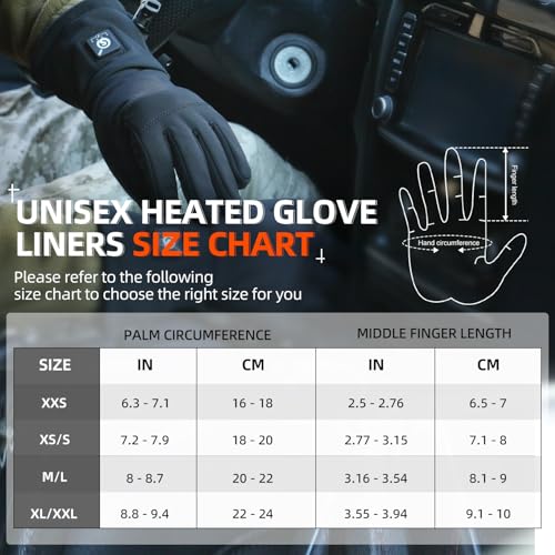 ?Balanced Warmth & Flexibility? The heated gloves feature a mid-thickness design that provides an excellent balance between warmth and dexterity. Thicker than typical heated glove liners, they can be worn on their own for daily use. Compared with bulky winter gloves, they offer greater flexibility, making hand movements easier. When temperatures drop below –10°C, it can also be layered under outer gloves for enhanced insulation. Perfect for cycling,camping, hiking, skiing,driving