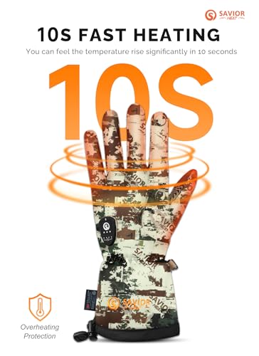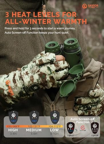 ?3 Heat Levels?Three adjustable heat settings (High/Medium/Low) provide up to 11 hours on Low and reach about 150°F on High. Heat up when it’s freezing, or switch the heat off and use them like regular gloves when it’s milder—making them a versatile hunting glove choice from spring through winter.SAVIOR heated hunting gloves feature dual control, so you can adjust the heat via the app or the on-glove button and check the LED battery level at a glance.