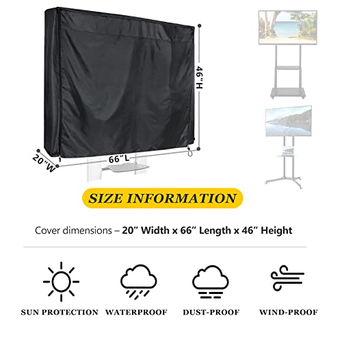[PRODUCT SIZE]:Outdoor TV Cover only, 66 " Long x 46 " High x 20" Deep, for 60-72 " TVs and monitors on covered rolling/mobile stand TV carts, only available in the common 16:9 aspect ratio and 21:9 aspect ratio