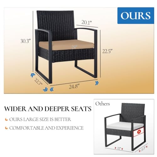 ?EXTRA COMFOTABLE?The seating space of patio furniture is spacious and sturdy The cushions are covered with breathable polyester fabric and padded with high-density foam for ultimate comfort. The widened backrests and curved armrests on either side perfectly support the body and allow for full relaxation.