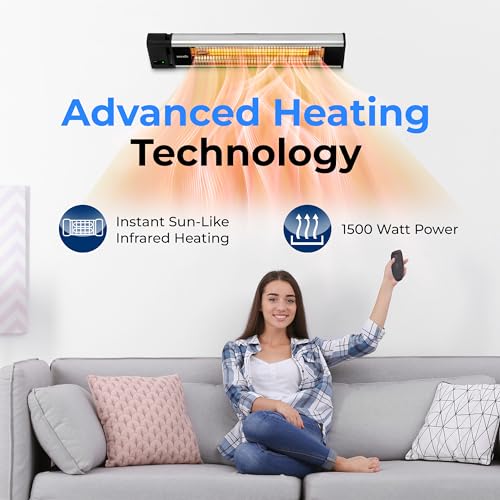 INSTANT WARMTH: Relax on cool days with our patio heaters for outdoor use, delivering sun-like, odorless heat in seconds—no gas or propane needed. Two heat levels and a remote control ensure immediate, convenient comfort.