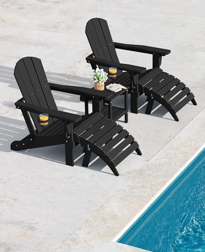Complete Adirondack Set: Package includes: 2 adjustable Adirondack chairs, 2 folding Adirondack ottomans, and a double-layer outdoor side table. Everything you need for a cozy outdoor seating arrangement is included, making it convenient to set up your relaxation zone.