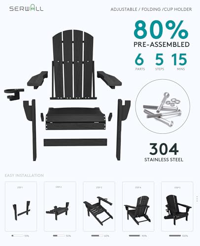 Portability and Storage: SERWALL Folding Adirondack Chair and Ottoman can effortlessly collapses, making it easy to store and carry. Ideal for transportation or compact storage.