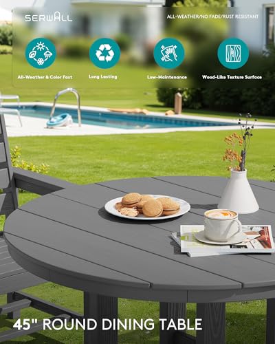 [Practical Umbrella Hole] The SERWALL patio round dining table features a 1.88" umbrella hole, allowing you to add shade with a patio umbrella (not included). The HDPE material is low maintenance and durable, making it ideal for outdoor use.