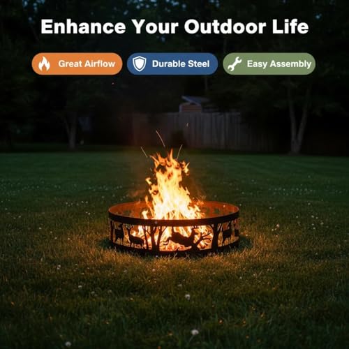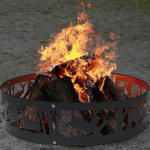 Novelty Design Fire Ring - Round fire ring for keeping an outdoor fire safely contained. SHARELLON backyard fire ring was carvings of deer.