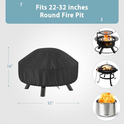 Perfect Fit: 32'' D x 16'' H fire pit bowl cover fits round fire pit sizes from 22'' to 32'' Dia, perfect for fire pits of Bali Outdoors, Solo Stove, Cogesu, Gas One, EAST OAK, Aoxun, SINGLYFIRE, Yaheetech